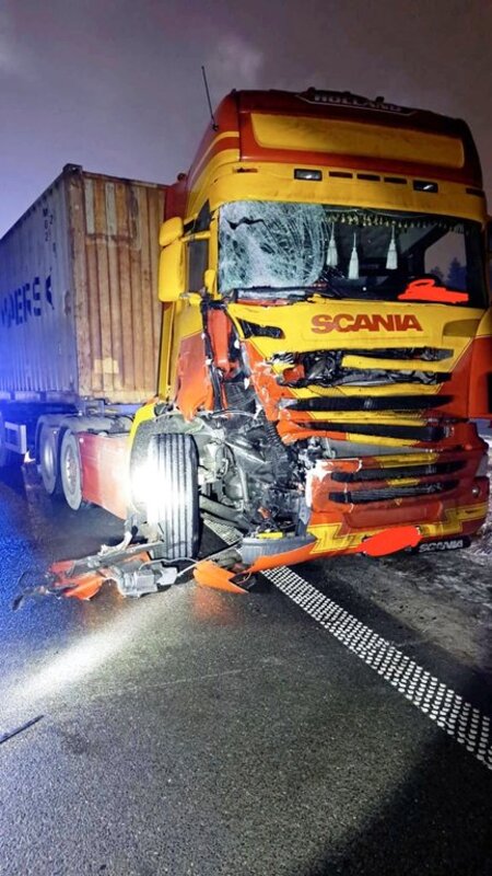 Dziś w godzinach nocnych na drodze# ekspresowej S5 w Lisim Ogonie samochód ciężarowy zderzył się z busem. Jedna osoba została ranna.
