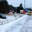Po zderzeniu w jednym z pojazdów aktywował się system eCall, który automatycznie poinformował służby o zdarzeniu. Według wstępnych informacji doszło do zderzenia czołowego, w wyniku którego jedna osoba miała zostać uwięziona w pojeździe. Ze względu na powagę zgłoszenia na miejsce natychmiast skierowano dwa Zespoły Ratownictwa Medycznego, trzy zastępy Straży Pożarnej, Policję oraz śmigłowiec Lotniczego Pogotowia Ratunkowego. Po przybyciu na miejsce zastano trzy pojazdy w przydrożnym rowie. Ze wstępnego rozpoznania wynikało, że śmigłowiec LPR nie jest potrzebny i został odwołany. Zadaniem służb było przebadanie uczestników kolizji, zabezpieczenie miejsca zdarzenia oraz odłączenie akumulatorów. W zdarzeniu brały udział trzy osoby, które po przebadaniu pozostały na miejscu, dlatego zdarzenie zostało zakwalifikowane jako kolizja drogowa.