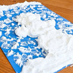 Do wykonania pracy potrzebujesz: piankę do golenia, klej introligatorski np. magic, kartkę z niebieskim i czarnym tłem, aby lepiej kontrastowało z piankowym rysunkiem, plastelinę, miseczkę.