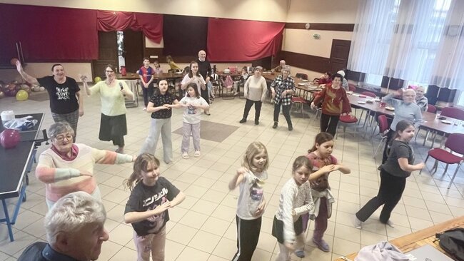 Czwartek był dniem integracji z seniorami. Opiekunka grupy Aktywni Razem Natalia Pancio przygotowała sportowe zadania. Były tańce z balonami, wyścigi na miotle oraz zabawy z chustą. Trzeba przyznać, że oba pokolenia bawiły się tak samo dobrze. Uśmiechy i sportowe okrzyki nie cichły. Seniorzy przygotowali słodki poczęstunek a Natalia Pancio zadbała o wspólny posiłek.