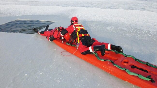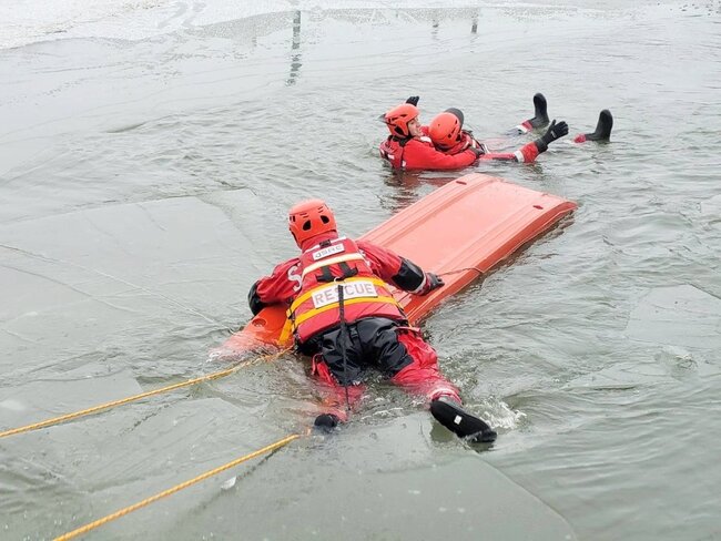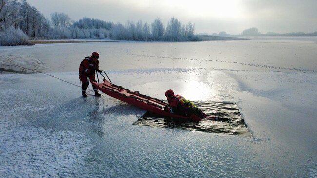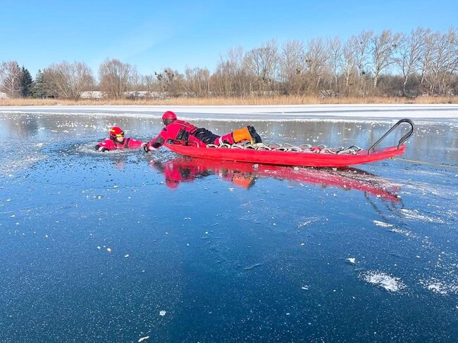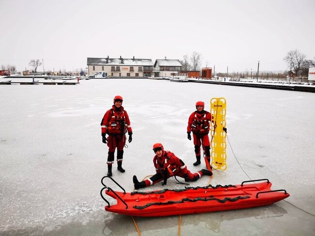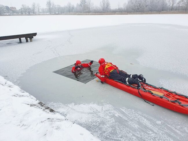 Mróz, a przez to w różnym stopniu# skute lodem akweny, to idealny czas na doskonalenie umiejętności z zakresu ratownictwa wodnego i lodowego.