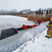 Akweny skute lodem. Strażacy realizują ćwiczebne scenariusze