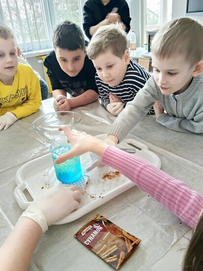 Dnia 24 marca uczniowie klasy 1 ze Szkoły Podstawowej im. Jana Pawła II w Kowalewie wraz z wychowawcą, panią Anną Kujawą, mieli wyjątkową okazję spojrzeć na chemię z zupełnie innej perspektywy – jako na dziedzinę obecną w codziennym życiu. Zajęcia zostały przygotowane we współpracy z uczniami klasy 8 oraz nauczycielem chemii, panią Dorotą Boruch. W realizację doświadczeń zaangażowani byli również nauczyciele współorganizujący proces kształcenia – p. Danuta Witosławska oraz p. Katarzyna Świtniewska, którzy wspierali uczniów na każdym etapie działań.