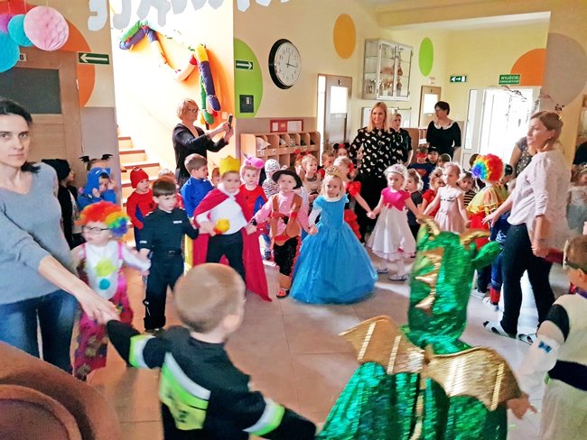 17 lutego 2020 r. w Samorządowym Przedszkolu nr 3 im. W. Chotomskiej w Szubinie odbył się „Bal karnawałowy”. Tego dnia już od rana w przedszkolu pojawiały się kolorowe postacie. Dzieci przebrane były za bohaterów znanych bajek. W salach przedszkolnych można było spotkać wróżki, księżniczki, motylki, biedronki, pszczółki, smoka, piratów, policjantów… Nie sposób zliczyć i wymienić wszystkich. Stroje naszych przedszkolaków były bardzo oryginalne i kolorowe. Na tę wyjątkową okazję zaprosiliśmy do prowadzenia balu panią Jolantę Muzalewską, która zachęcała wszystkich do tańca specjalnie przygotowaną muzyką. Dzieci świetnie się bawiły przy największych hitach z repertuaru dziecięcego i nie tylko, brały udział w konkursach, zabawach i korowodach.