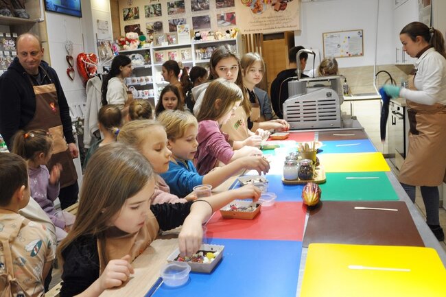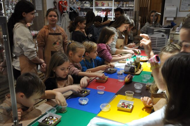 Kolejny dzień był prawdziwą gratką dla miłośników słodyczy. Podczas wizyty w manufakturze dzieci miały okazję dowiedzieć się, jak powstają czekoladowe przysmaki, a także samodzielnie przygotować swoje wyroby. Każdy uczestnik zabrał do domu własnoręcznie wykonane tabliczki czekolady.