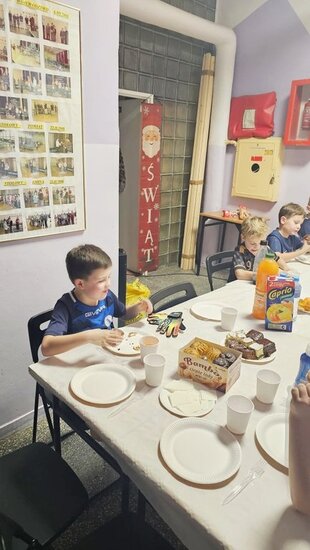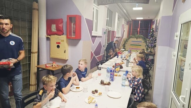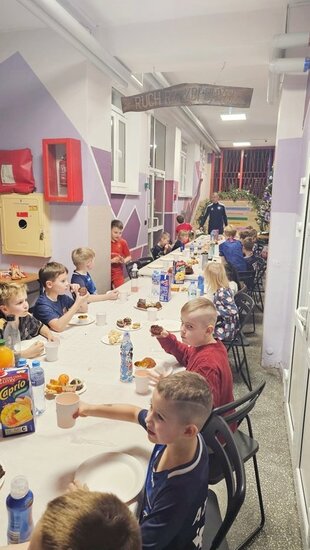 Następnie swoją Wigilię rozpoczęły starsze grupy – rocznik 2010 oraz młodsi wspólnie z rocznikiem 2015. Oni również rozegrali mecze między sobą, a później przeszli do wspólnego dzielenia się opłatkiem, poczęstunku i wręczenia prezentów.