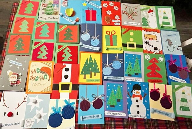Podczas trzech spotkań wolontariusze własnoręcznie wykonali piękne świąteczne kartki – łącznie powstało aż 85 unikatowych kartek, pełnych ciepłych słów i świątecznych życzeń. Każda z nich była wyrazem pamięci i troski o drugiego człowieka.