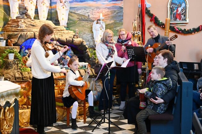 Śpiew poprowadzili członkowie Diakonii Muzycznej Ruchu Światło-Życie Diecezji Bydgoskiej oraz organistka, do których dołączyli parafianie i zaproszeni goście. We wszystkich głosach ujawniła się różnorodność, a także talenty, które od lat tworzą parafię świętego w Szaradowie. – To najcenniejszy dar, który mamy i tak przyjmujemy Jezusa oraz Boże Narodzenie. Bardzo dziękuję za to spotkanie. Za to wejście w pewien etap przygotowania do tego jubileuszu. Dziękuję księdzu proboszczowi, że jest z wami i przygotowuje ten czas w wymiarze nie tylko tym zewnętrznym, ale duchowym, dzisiaj jeszcze za tę ucztę kolędową – dodał bp Krzysztof Włodarczyk.