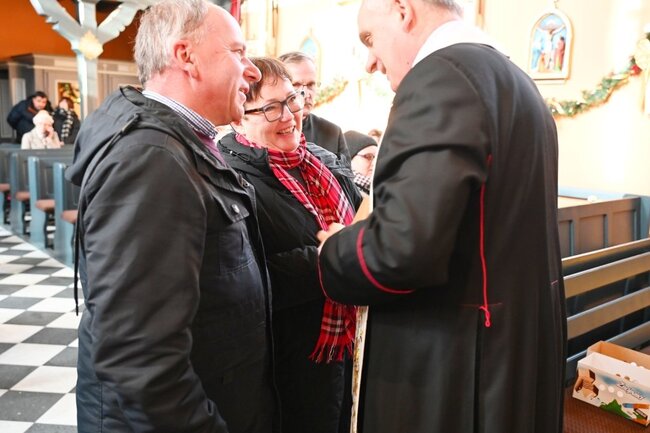 W kolędowaniu uczestniczyły dzieci, wśród nich te, które przystąpią do pierwszej Komunii świętej. Tym bp Krzysztof Włodarczyk poświęcił książeczki modlitewne, a wszystkim chętnym udzielił indywidualnego błogosławieństwa.