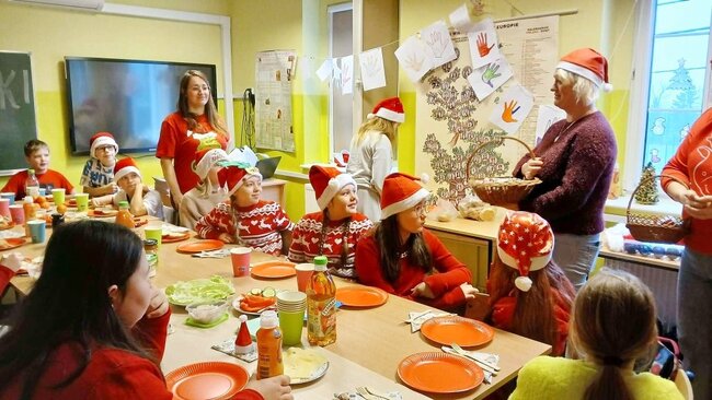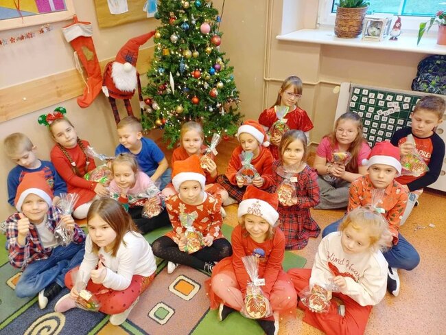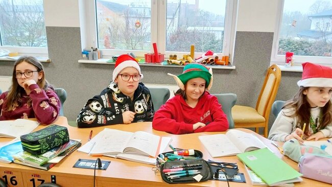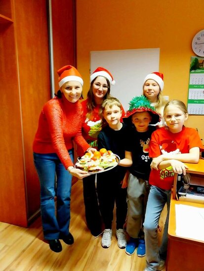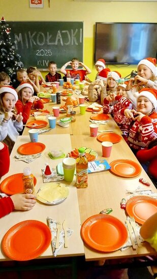 Nie było chyba osoby, która nie miałaby tego dnia czerwonego ubrania, czy Mikołajowej czapki, co pozwoliło poczuć świąteczną magię. Klasy świętowały we własnym gronie, wykonując różne zadania, śpiewając piosenki, dekorując salę, czy też- jak uczniowie klasy 4.- przygotowując Mikołajkowe, zdrowe śniadanie…