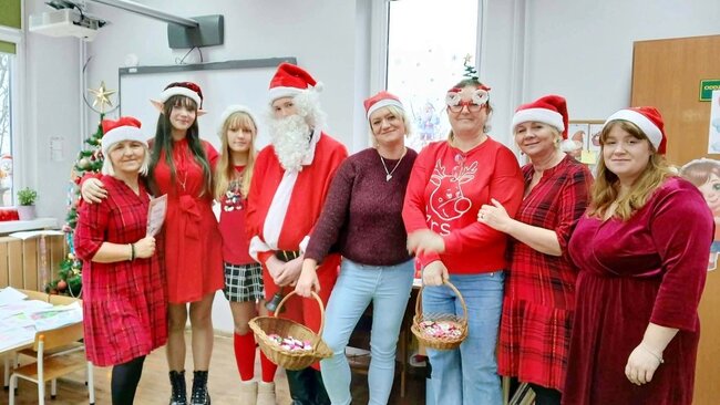 Tradycyjnie uczniów i przedszkolaków odwiedził Święty Mikołaj (w tym roku był nim Adam z klasy 8.) w towarzystwie elfów- Weroniki i Nicoli oraz mam z Rady Rodziców. To właśnie Im zawdzięczamy słodkości, które wszyscy otrzymali.