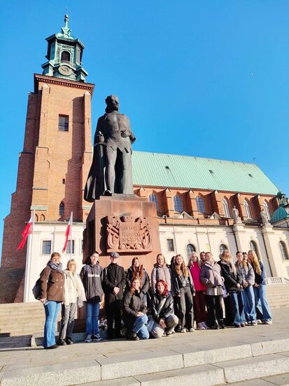 8 listopada młodzież pojechała do Gniezna - pierwszej stolicy Polski, gdzie zwiedzili Bazylikę Prymasowską Sanktuarium św. Wojciecha i zapoznali się ze zbiorami Muzeum Początków Państwa Polskiego. Opiekunami była pani Joanna Biernacka-Kozerewicz oraz pan Piotr Szybowicz.