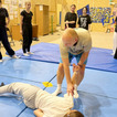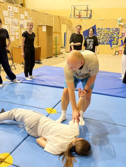 Program zajęć został przygotowany tak, aby rozwijać zarówno sprawność fizyczną, jak i umiejętności odpowiedzialnego zachowania w sytuacjach wymagających opanowania i koncentracji. Podczas części poświęconej samoobronie, pod czujnym okiem trenera Sebastiana Dobosiewicza, młodzież zapoznała się z podstawami zasad bezpieczeństwa oraz podstawowymi technikami obronnymi. Uczestnicy ćwiczyli m.in. pady, bezpieczne upadanie oraz proste dźwignie, ucząc się reakcji na potencjalne zagrożenia i sposobów na uwolnienie się z chwytów. Równocześnie trenowali podstawowe elementy musztry policyjnej, które kształtowały dyscyplinę, precyzję wykonywanych ruchów oraz współpracę w grupie. Kolejnym etapem szkolenia były zajęcia z podstaw strzelectwa.