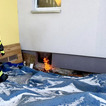 Ogień przedostał się do wnętrza pomieszczenia powodując, silne zadymienie i zapalenie się szaf wraz z ich wyposażeniem.