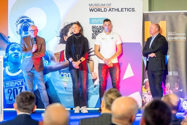 To muzeum istnieje w świecie realnym – teraz tutaj w Toruniu, ale też w świecie wirtualnym. Dostęp do platformy cyfrowej muzeum można uzyskać ze strony World Athletics)  – wyjaśniał dyrektor MOWA Chris Turner. – Znajduje się tutaj wiele artefaktów, ale też pokazuje  kontekst w jakim mistrzowie lekkiej atletyki zdobywali swoje medale i bili rekordy. Na ścianie wind polecam  plakat pokazujący kobiety i mężczyzn w soku wzwyż oraz skoku o tyczce. Ten plakat jest naturalnej wysokości i najlepiej uświadamia jakie wysokości pokonywali lekkoatleci zdobywając rekordy.