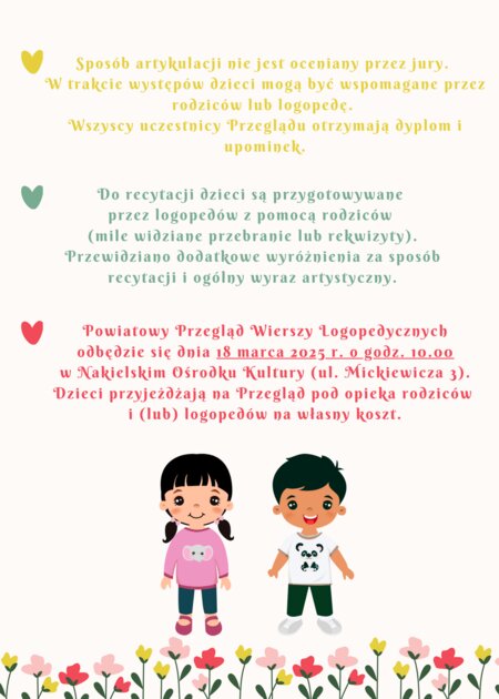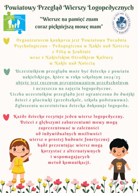 Powiatowa Poradnia Psychologiczno-Pedagogiczna# w Nakle nad Notecią zaprasza na Przegląd Wierszy Logopedycznych pt. „Wiersze na pamięć znam, coraz piękniejszą mowę mam".