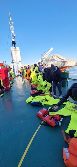 Uczniowie odbyli również wizytę w „Akademickim Centrum Szkoleniowym MUSTC” Politechniki Morskiej w Szczecinie. Mieli możliwość obserwacji profesjonalnego szkolenia i uczestniczyli w ćwiczeniach praktycznych, które pozwoliły im lepiej zrozumieć realia pracy na morzu. Zajęcia prowadzone były przez doświadczonych instruktorów, którzy dzielili się swoją wiedzą i doświadczeniem zawodowym.