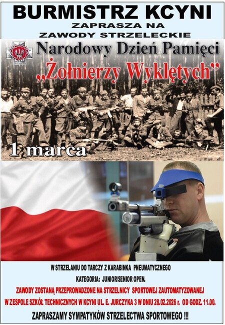 Zapraszamy na Otwarte Zawody Strzeleckie #pod patronatem Burmistrza Kcyni z okazji Narodowego Dnia Pamięci "Żołnierzy Wyklętych" ustanowionego na dzień 1 Marca.