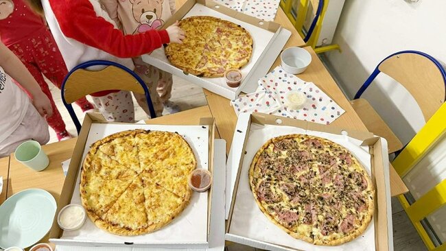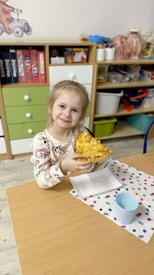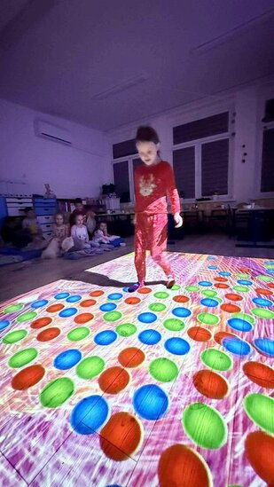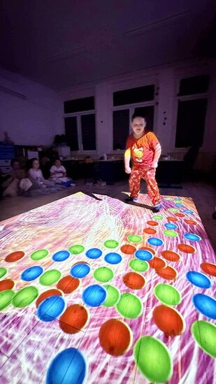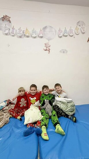 Na uczestników czekało wiele atrakcji. Odbyło się nocne kino, mini dyskoteka, a także zabawy na interaktywnej podłodze, które sprawiły dzieciom mnóstwo radości. Nie zabrakło również czegoś pysznego – wszyscy wspólnie zajadali się smaczną pizzą.