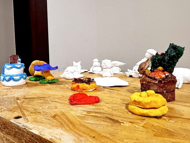Ekspozycja prezentuje prace dziesięciu autorek – uczestniczek zajęć, które przez ostatnie 8 miesięcy rozwijały swoje umiejętności artystyczne. Na wystawie zobaczyć można zarówno prace finalne, jak i elementy fazy projektowej, co pozwala dostrzec proces twórczy – od pomysłu do realizacji.