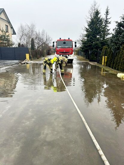 - Odpompowywanie wody z zalanego terenu. Działania na dwóch ulicach