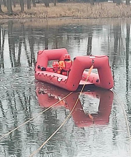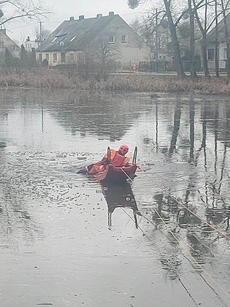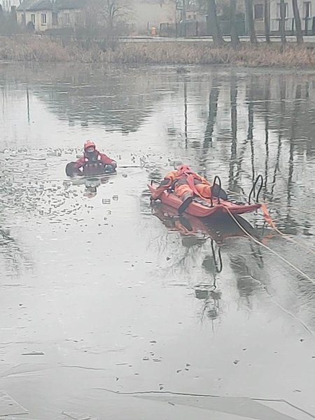 14 stycznia strażacy z JRG Szubin oraz z OSP Kcynia na stawie w# Smoguleckiej Wsi przeprowadzili ćwiczenia oraz pokazy z zakresu ratownictwa lodowego dla uczniów Szkoły Podstawowej w Laskownicy.