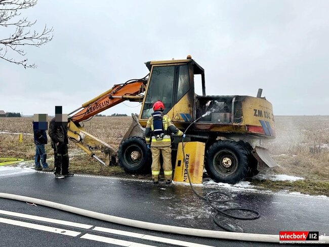Pożar koparki. Droga była zablokowana