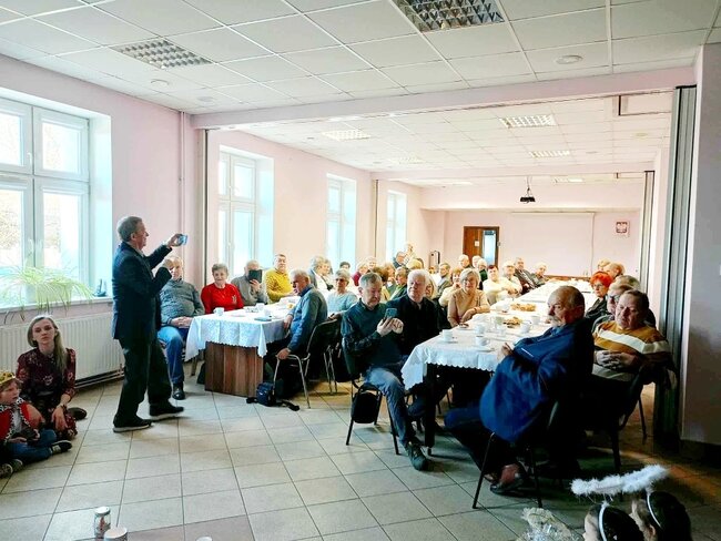 Mali artyści z wielkim zaangażowaniem przedstawili program artystyczny, po czym wspólnie z członkami stowarzyszenia zaśpiewali tradycyjne kolędy. Seniorzy nagrodzili dzieci gromkimi brawami, a na ich twarzach nie brakowało uśmiechów i wzruszenia. To wyjątkowe wydarzenie na długo pozostanie w pamięci zarówno dzieci jak i seniorów, pokazując, jak ważne są takie spotkania budujące więzi i wzajemną życzliwość.