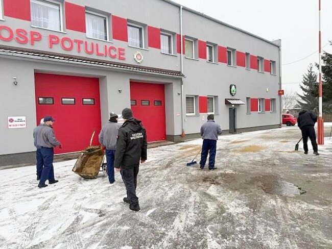 Skazani zatrudnieni na rzecz potulickiej jednostki penitencjarnej w systemie bez konwojenta w grupie utrzymującej porządek na terenie Potulic, pod nadzorem funkcjonariuszy Służby Więziennej, wzięli udział w działaniach porządkowych, odśnieżając chodniki w newralgicznych miejscach.