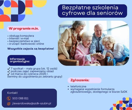 Zajęcia odbędą się w Szubińskim Domu Kultury w terminie marzec-czerwiec 2026 r.
