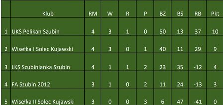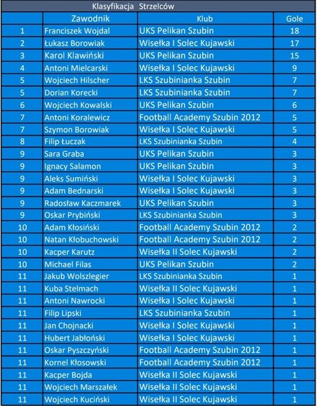 Wisełka II Solec Kujawski - Football Academy Szubin 2012, po którym poznamy końcową klasyfikację oraz przekażemy nagrody indywidualne.