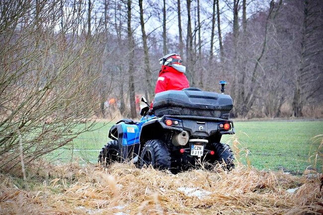 Patrole lądowe i powietrzne: Część zespołu, wspólnie z Policją, przeczesuje nadrzeczne nieużytki z wykorzystaniem quada oraz drona, co pozwala na monitorowanie trudno dostępnych miejsc z góry.