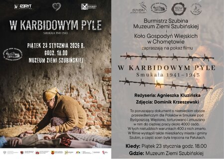 Burmistrz Szubina, Muzeum Ziemi Szubińskiej #i Koło Gospodyń Wiejskich w Chomętowie zapraszają na projekcje filmu pt. W karbidowym pyle. Smukała 1941-1943.