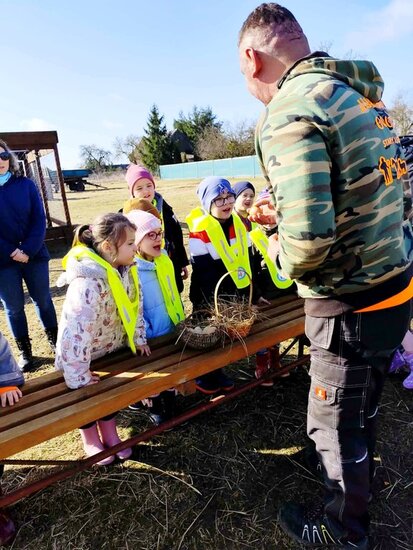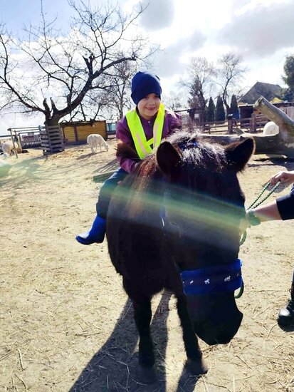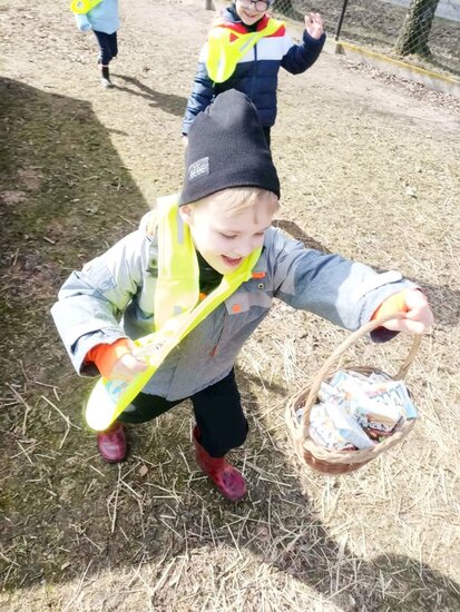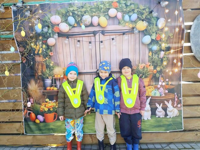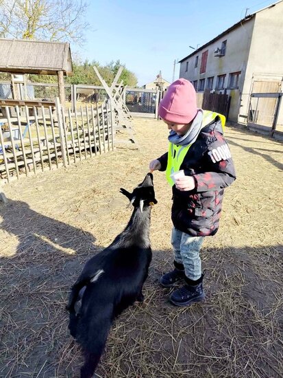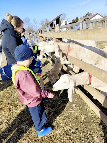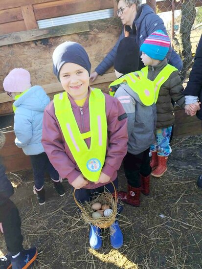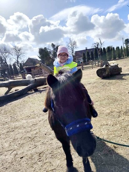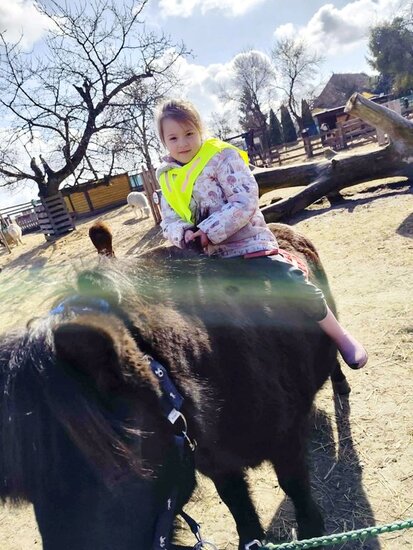 Nie zabrakło słodkiego poczęstunku oraz konnej przejażdżki, a piękna pogoda pozwoliła na szukanie wielkanocnego koszyczka i swobodne zabawy na świeżym powietrzu. Na zakończenie dzieci wręczyły kartkę z podziękowaniami i w dobrych humorach wróciły do przedszkola.
