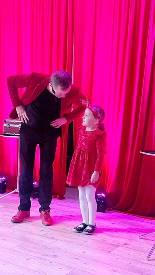Dzieci mogły podziwiać wiele zadziwiających trików. Na ich oczach z niewielkiej torebki pojawił się olbrzymi, dwumetrowy miś, stolik uniósł się w powietrze, a kostka Rubika została ułożona w kilka sekund. Znikające piłeczki, zaczarowana karta, płonąca książka i ożywiona chustka sprawiły, że na twarzach dzieci gościło zdumienie i mnóstwo radości.