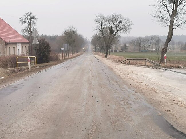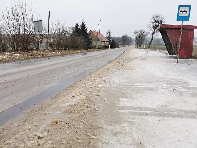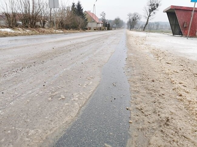 Kierowcy poruszający się drogą wojewódzką w #Szczepicach powinni zachować szczególną ostrożność. Nad ranem w miejscowości doszło do awarii sieci wodociągowej, w wyniku której woda zalała jezdnię.