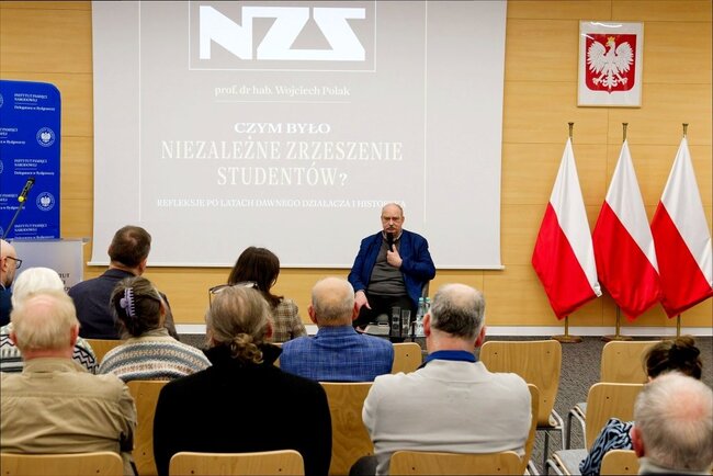 W ramach obchodów# 45. rocznicy rejestracji Niezależnego Zrzeszenia Studentów w Delegaturze IPN w Bydgoszczy odbył się wykład prof. Wojciecha Polaka pt. „Czym było NZS”.