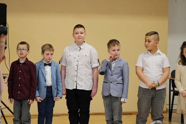Część artystyczną rozpoczęła klasa pierwsza, prezentując wiersze i piosenkę, ukazujące obraz nowoczesnej Babci i Dziadka. Występ wzbudził wiele uśmiechów i radości wśród publiczności.