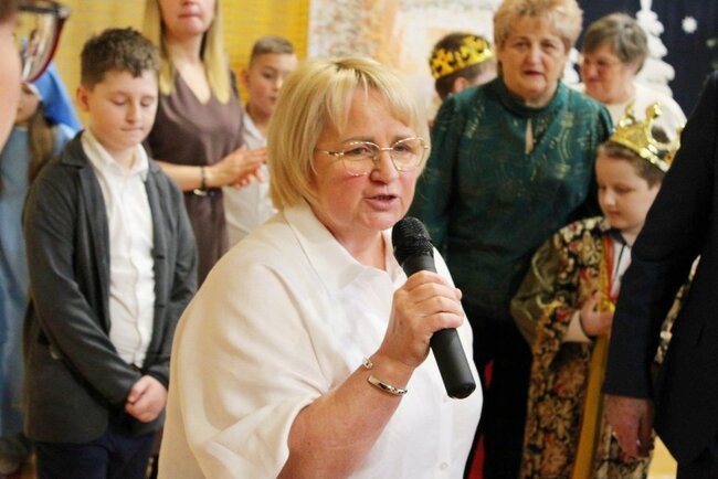 Na wstępie, wszystkich gości serdecznie powitała pani Marlena Marchwińska, wychowawczyni klasy pierwszej. Następnie głos zabrała Pani Dyrektor Ewelina Marczak, która również przywitała przybyłych Dziadków i złożyła Im ciepłe życzenia z okazji ich święta, dziękując za miłość, troskę i wsparcie, jakimi obdarzają swoje wnuki.