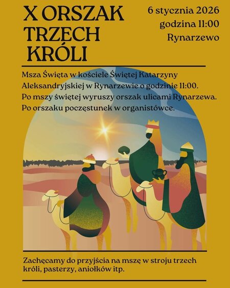 Serdecznie zapraszamy na #X Orszak Trzech Króli, który odbędzie się 6 stycznia 2026 r. o godz. 11:00 w Rynarzewie.