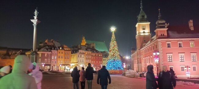 Dzień zakończyliśmy wieczornym spacerem po warszawskiej Starówce, która w świątecznej scenerii, przy pięknie rozświetlonej choince, stworzyła wyjątkowy klimat i była doskonałym zwieńczeniem intensywnego dnia.