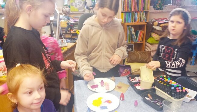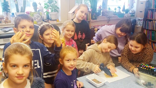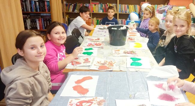 Spotkania miały walor rozrywkowo – edukacyjny. Pobudzały i rozszerzały zainteresowania. Pozwoliły oderwać się od komputerów i telefonów, nawiązać nowe znajomości. Dużym zainteresowaniem cieszyły się warsztaty plastyczne robione różnymi technikami. Robiliśmy walentynkowe serca z glinki samoutwardzalnej, witraże z kredek świecowych i kleju na gorąco. W ruch poszły też farby akrylowe. Robiliśmy biżuterię z drutu i lakierów do paznokci. Każdego dnia robiliśmy przygotowania do naszego miasta marzeń. Były w ruchu również gry planszowe. Oczywiście nie obyło się bez kalamburów, które dzieci bardzo lubią. Był też konkurs na jak zabawniejszą interpretację czytania wybranego tekstu literackiego. Na warsztat poszła seria Thomasa Brunstroma z przygodami „ Taty Oli”. Na zajęciach nie zabrakło słodkiego poczęstunku. Mamy nadzieję, że uczestniczące w zajęciach dzieci przekonały się, że czas ferii w bibliotece może być wspaniałą przygodą. W spotkaniach uczestniczyło 56 dzieci. Zajęcia przygotował i prowadziła kierowniczka filii bibliotecznej w Rynarzewie P. Wiesława Siódmiak.
