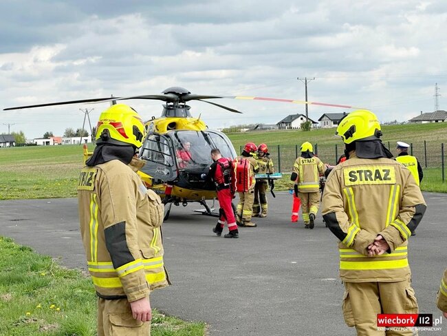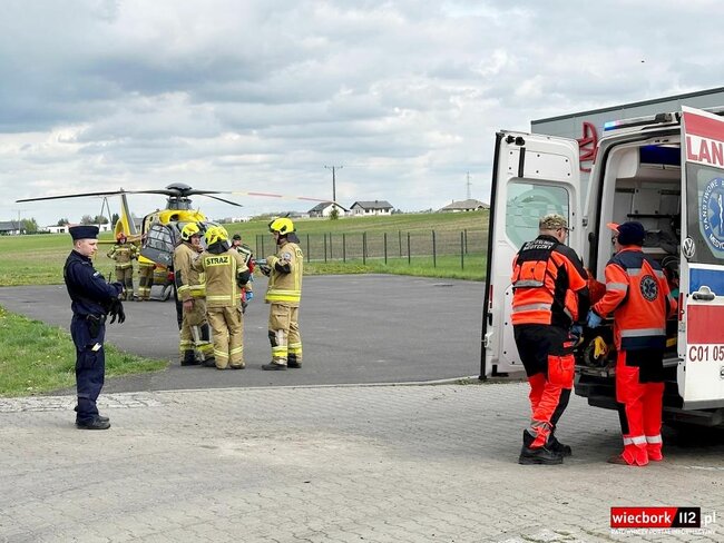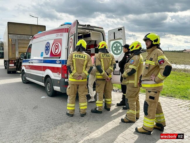 Zderzenie motocykla z ciężarówką. Wezwano Lotnicze Pogotowie Ratunkowe