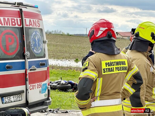 Na miejsce zadysponowano dwa zastępy z Jednostki Ratowniczo-Gaśniczej w Sępólnie Krajeńskim oraz zastęp z Ochotniczej Straży Pożarnej w Więcborku. Na miejscu okazało się, że doszło do zderzenia motocykla z samochodem ciężarowym. Wskutek zderzenia kierujący motorem marki Yamaha z obrażeniami został przetransportowany przez przybyły na miejsce śmigłowiec Lotniczego Pogotowia Ratunkowego – Ratownik2 do szpitala w Bydgoszczy. Na czas akcji na drodze wojewódzkiej nr. 189 prowadzony był ruch wahadłowy.