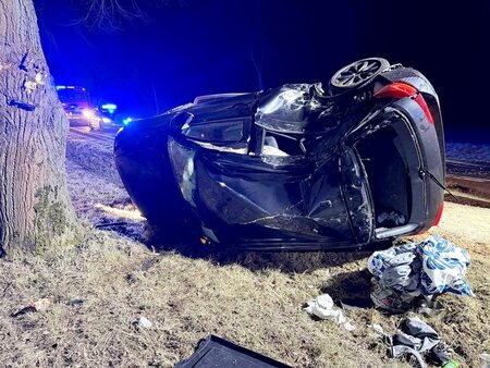 Zjechał z drogi i dachował. 50-latek trafił do szpitala